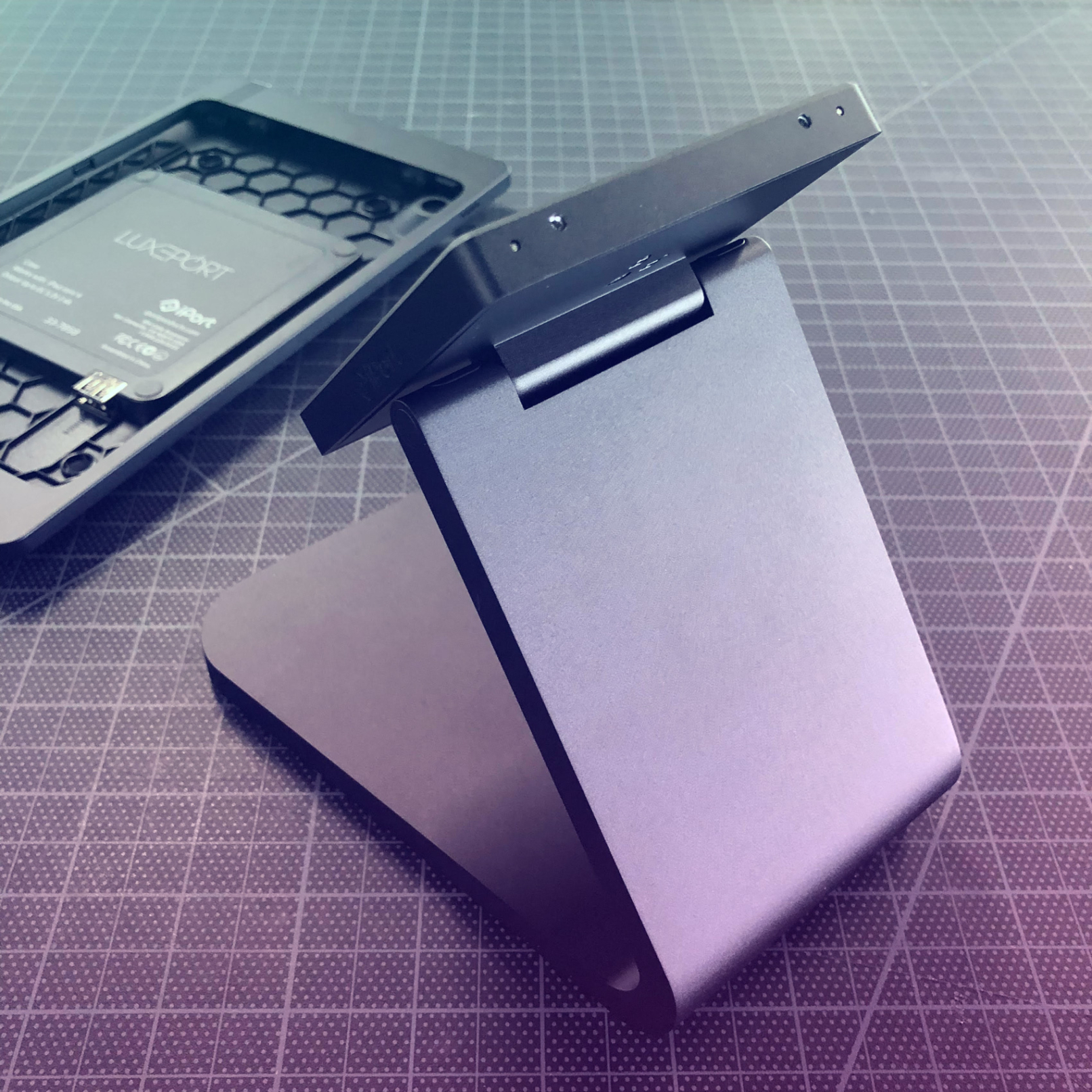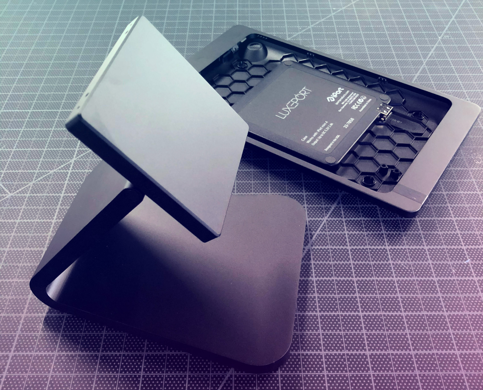 Detail views of Luxeport charge dock and case machining